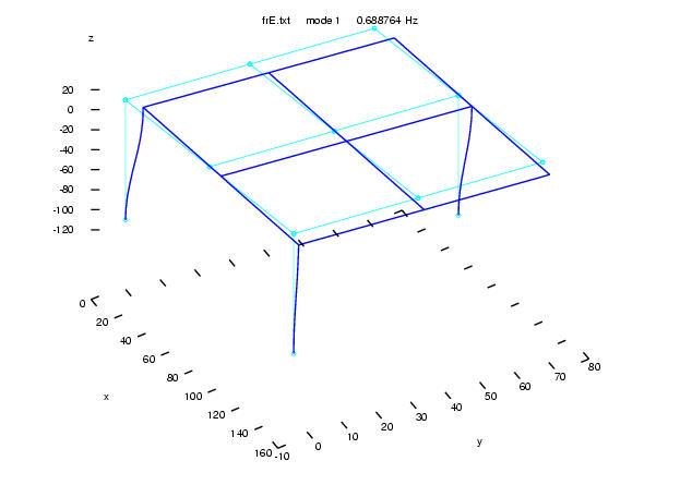 Frame3DD is free open-source software for static and dynamic structural analysis of 2D and 3D frames and trusses with elastic and geometric stiffness. It computes the static deflections, reactions, internal element forces, natural frequencies, mode shapes and modal participation factors of two- and three- dimensional elastic structures using direct stiffness and mass assembly. Frame3DD has its own text-file input format (.3dd), but additionally supports matlab (.m) and spreadsheet (.csv) file formats, and offers graphical output including mode shape animation via Gnuplot.